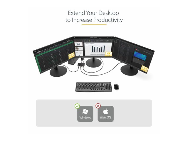 StarTech.com 3-Port Multi Monitor Adapter, DisplayPort 1.2 to HDMI MST Hub, Triple 1080p HDMI Monitor, Video Splitter for Extended Desktop Mode on Windows PCs Only, DP to 3x HDMI MST Hub