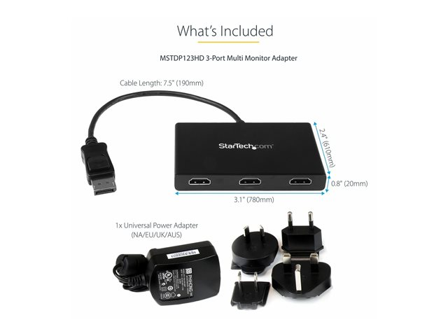 Multi Stream Transport (MSTDP123HD) - Video/audiosplitser - 3 x HDMI - desktop - AC 100/240 V