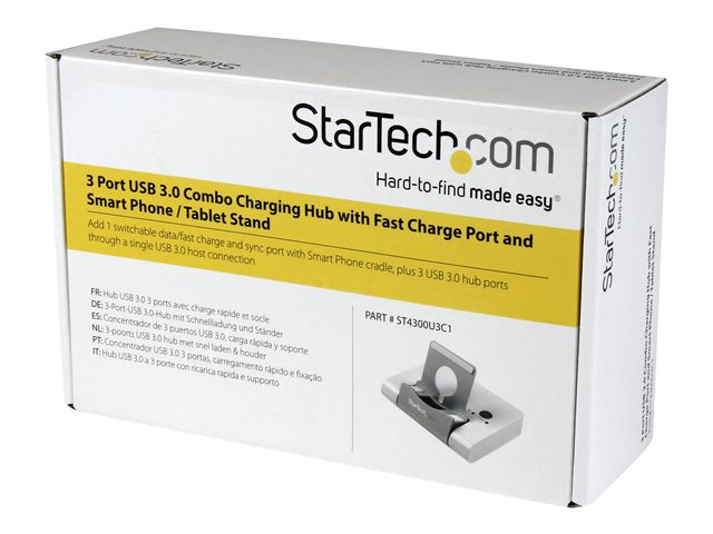 StarTech.com 3-poorts-USB 3.0-hub voor laptops en op Windows gebaseerde tablets plus een snellaadpoort en apparaatstandaard