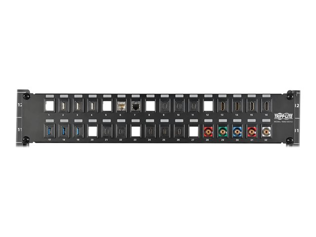 Eaton Tripp Lite Series 32-Port 2U Rack-Mount Unshielded Blank Keystone/Multimedia Patch Panel, RJ45 Ethernet, USB, HDMI, Cat5e/6